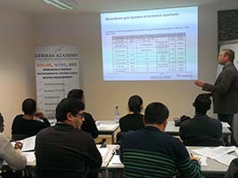 Mit dem Fraunhofer-Institut für Windenergie und Energiesystemtechnik (IWES) verbindet uns eine besonders enge Partnerschaft, für den Großteil unserer Kurse stellt das IWES Dozenten und Labore zur Verfügung, während die German Academy (GA) die Organisation übernimmt. Im Jahr 2013 organisierte die German Academy gemeinsam mit der British University in Kairo und der Cairo University Intensivkurse in Deutschland für Studenten.